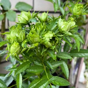 ①バラ オリエンタルエクレール 二番花が咲いてきました ずっとエクレールが気になっていて、先月お迎えしたのですが、種類が違うオリエンタルエクレールをお迎えしていました😅 種類が違う事をGSの花友さんから、教えて頂き気付きました、ありがとうございます。 開花を見るのは初めてです🤭これも好きです🥰 ②シュネープリンセスが咲いてくれたので、 グリーン✖️ホワイトのミニアレンジ。 ③④今日庭で咲いてくれたバラで、アレンジメント。 庭のバラなので、毎回よく似てしまいます😅 ⑤ミニひまわりも、次々咲いてくれるので、もう1つ飾ってみました。