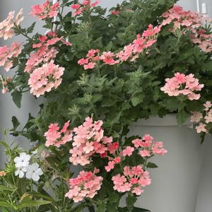 台風横断中🌀東京の雨のピークはこれからでしょうか 水曜日くらいから若干気温が下がった影響なのかPWスーパーベナ「ピーチメルバ」、育ってきたつぼみがどんどん開いてきてます 陽当たり微妙な西向きのベランダのなかでいちばん南向きに近い環境💦にせハンギングで株の姿は微妙…それでもこんなに咲いてくれてなんて頑張り屋さんなんでしょう 大きな被害が出ず気温が少し下がってもう少し秋を感じたいです