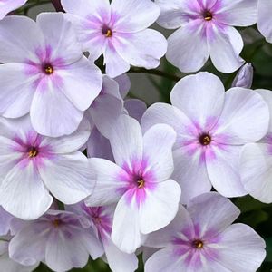 気温が高いと花の色も薄くなるようです。また違った姿を見れるのも悪くないですね😌✨ ①薔薇『ブルーグラビティ』 青藤色の花が、高温時はほとんど 白っぽくなっています。 ②『フロックス オープニングアクト・ピンクアドット』 春は中央に濃いピンクがのる淡いピンクの花だったのですが、白に近い色合いです。