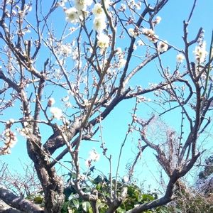 庭植えの梅も 咲き揃ってきました😊 横枝をいくつか伸ばして そこから上に伸びる枝を増やす という理想形を目指していますが (そういうことに気づいたのが1〜2年前😝) なかなか思うようには😅 時間もかかります それでもこの西向きの庭で 陽当たりがよくない場所なのに 今年はこんなに咲いてくれて 嬉しいです😂