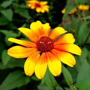 前々回投稿の「キクイモモドキ」と同じ場所に咲いて いますが、中心の色がとても綺麗です🌻 良く見ると赤い部分は小さなお花の集合体になっていますよ🤗💕 ( マンションの花壇 )
