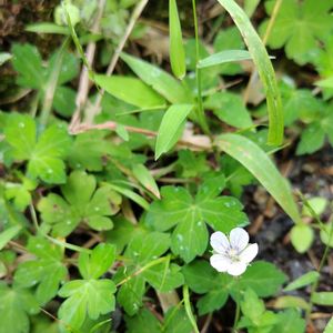 足下の草むらに ぽつんと一輪 清楚な花 踏まなくて 良かったぁ~😅💦 ゲンノショウコ❀🍀