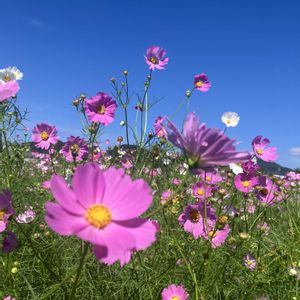 真っ青な空とピンクのコスモス 🫧☁️💙☁️🩷️🫧
