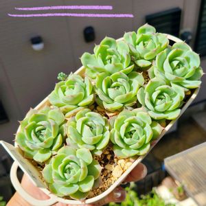 おこんばんは~💫 今日は帰りが遅かったから 多肉あんまり見れなかった♪ でもキラキラ✨と目に付いた「SnowAngel」 ウォーターマーク.。o○ パッキパキ✨✨ 春一番に植え替えたら可愛くなって来たね😊💙 真ん中ちょっと赤くなるんだね♪