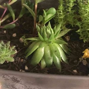 今日夜越山植物園の多肉フェアから連れて帰ってきました!旦那といいねーと話しながらレジ横のチビちゃんを購入したものの、帰ってきてから名前覚えてくるのを忘れてしまいました💦😞 この子のお名前は何でしょうか? 怪魔玉?峨眉山?