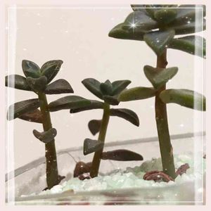 パセリー菜にて。厳しい季節なのに連れて帰って来てしまいました💦 確かに徒長気味。 でも一つあわ雪のベビーがいた😆 なんとか夏越しして元気に育ってね🍀