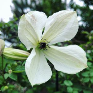 クレマチス ホワイト プリンス チャールズ 🇬🇧でチャールズ国王の戴冠式が行われる今日👑✨️。 我が家ではこの花が開花しました。 花弁が薄くて雨に濡れるとすぐダメージを受けちゃうのが残念だけど、だからこその可憐さが良いのかも。