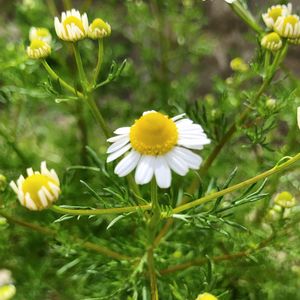 ジャーマンカモミール 白い花弁が散っても黄色い花芯が綺麗に残ってそれはそれで可愛い。 殺風景だったお義父さんの工場跡地を彩ってくれてる。