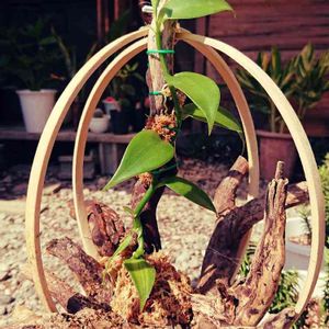 バニラ、伸び過ぎた一鉢の方を行燈仕立てにしました。 先月くらいから夜間は室内に入れていましたが、つるの先端が変色し始めちゃったので、一つはビニール温室に、もう一つは完全室内管理に。室内はあまり日当たりが良くないので、どちらが良いのか判断つかず、二手に分けて様子見です。 お天気の良い休日だけ日光浴☀️