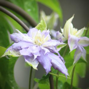 🏷️nami's gardenのクレマチス⚛️🍃 マズリー💙🩵🤍🌿 pic①②③🎞️ お庭の🏡🌳 中央で咲いてます⚛️🍃 今年は🗓️🐍 大きなお花が📏⚛️ たくさん咲いたので…🙌 小さなプラスチックの▲ オベリスクでは保てず⤵️ ぶっとい💨(太っい) 緑色の支柱を🟩 立てています😞 (pic④🎞️参) 眺める度🪟👀💣 気に入らない😫⤵️ このお花が終わったら🍂✂️ アイアンのオベリスクに🗼 変えようと思います🙂↕️ pic⑤は🎞️ アメリカ🇺🇸フジ🕉️♌️🕉️♌️ アメジストフォール🌿 こちらも🙄 蔓性なので➰➿🌿 アイアンフェンスに🤍⚜️ 絡ませています🌿 小さなお庭の🏡🌳 限られた🫸🫷 場所問題⚠️⤵️ 試行錯誤しながら🥸💭 理想のお庭へ🏡 進歩中🥾🥾🏔️⤴️ みなさま🫶 素敵な土曜日をお過ごしください🤗