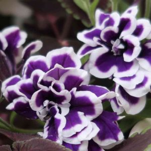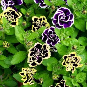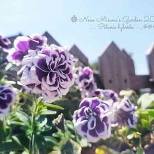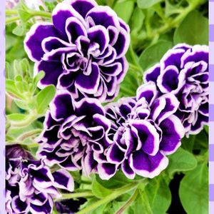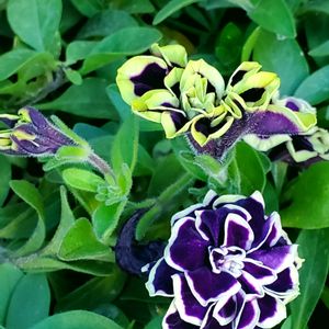 八重咲きペチュニア💜🤍 花衣・藍染と言うらしいです。👍😸 鉢植えの花の中でも異彩⁈😅を放ってましたー👍❣️💜🤍