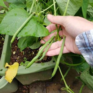 つるなしインゲンです。 水やりにふふふ ふ~ん🎵 って行ってみたら。 インゲン:「ちょい待ちやぁ〰️‼️ 実、大きなって重いやないの💨 風吹いたらな。あっちゃこっちゃフラフラ😵🌀して酔うっちゅーねん‼️ アンタな、大きゅうすんの好きなんわかるけど‼️‼️‼️」 うち:「うわぁぁ💥 ホンマすんません(T_T) 今日ちゃんと収穫しますさかいに💦💦💦」 インゲン:「あー‼️ それとな❗️ 支柱、立てておくれやっしゃ‼️ さすがに自立してるの辛ぁなってきたさかいに。」 うち:「ほな、今日は収穫はするけど、もう時間ないさかいに、支柱は明日な✨」 インゲン:「そりゃあ、えらいおおきに。 おおぅ⁉️ 今日やないんかーい❗️」 明日な、明日🎶(笑)