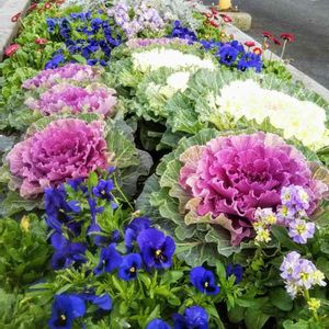 某駅前花壇🌼 秋冬は 月1回のお手入れで なんとか ここまでに✨葉牡丹が どこまで持ちこたえるかが 問題💦
