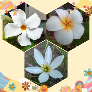 庭の白っぽいお花🤍 クライミングサンパラソル プルメリア ゼフィランサス 中心部はみんな黄色っぽいね💛🧡