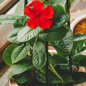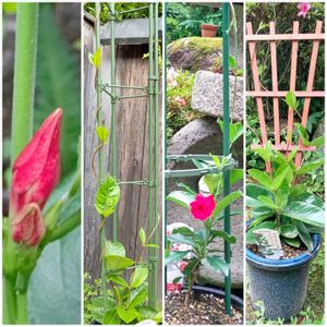 の花の購入ももう終わり… 後悔ないように考えてました 私は大きな物が好き、そして赤い花が好き だけどこのクライミングサンパラソル 買ってなかった だって3鉢サンパラソル有ります… 枯れないんだもの😑 枯れたら買おう… 弱るけど枯れない 後悔ないように5月末に結局買いました 葉もとても大きい ワクワクです