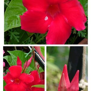 クライミングサンパラソルの大輪系レッドが咲いていました🌼 雨が少し止んでいたので庭パトしていたのですが、ペチュニアって雨に濡れると臭くないですか?☔😅 晴れた日はいい匂いするんですが、今日は玄関まわりがニオいます😁💦💦