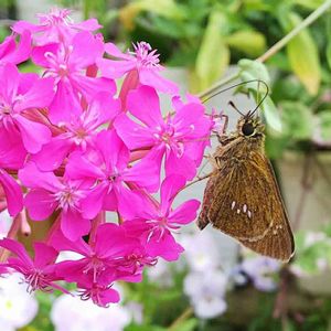 ムシトリナデシコで吸蜜中の、イチモンジセセリ🦋 大きなお目目が可愛い~❣️ 今年も来てくれました(❁´ω`❁)