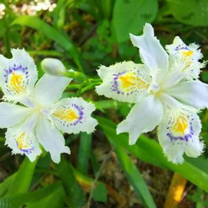 日陰に、シャガが咲いていました🥀 よ~く観察すると、不思議な質感ですよね🎵