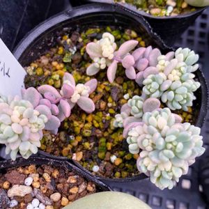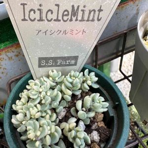 おはようございます。 インスタのセダム好き友さんの投稿で知った 『アイシクルミント』。 斑入りのパープルヘイズ… という超レアなセダムのようで… ダシフィルム系のセダムをコレクションしている私の食指が動きます😁 品種登録出願中で、日本花き流通の新作、限定販売品なんです。 初回販売すぐ売り切れだったそうで、追加の発売情報を教えてもらったので、発売時間ちょうどに楽天のショップで速攻で購入しました。 超人気だったようで、あと30秒遅かったら買えてなかったかと… とてもキレイな色合いなので、ぜひ紅葉を見てみたいのですが… 見るからに夏に弱そうな、儚げな雰囲気を醸し出していますよね💦 夏越し、頑張ろう…、😅