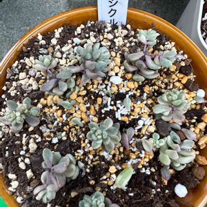 おはようございます。 超レアな、斑入りパープルヘイズの 『アイシクルミント』 のその後の様子です。 4月末にゲットして、すぐにばらして植え替えて… 最初はかなり少なかったですが、それなりには増えました。(下写真) いや、増えた、というよりは、根付いた、という感じですが。 梅雨時に蒸れて消えたら困ると思い、わりと乾燥気味を保っていたこともあり、そんなにはモリモリしていませんね。 本家パープルヘイズに比べたら、成長スピードはかなりゆっくりめのようです。 葉挿しもばら撒きましたが、葉挿しも斑入りで出てくるみたいです。 上の写真は、バスケットセダム寄せに入れたものですが、紅葉していい色になってます💕 真ん中の数株だけがアイシクルミントです。左のほうはマジョールです。 写真にはありませんが、斑入りじゃないものも紅葉してます。パープルヘイズは寒くなくても日当たりが良ければ紅葉するんですねえ…。 昨年のうちのパープルヘイズは、夏はもちろん、冬もミドリンな子ばかりでしたが… 植えっぱなしで乾燥気味を保って日に当てると、春夏でもわりと紫色になることがわかってきました。 多肉の紅葉と一口に言っても、種類により紅葉条件が違って奥深いですね〜。 アイシクルミントの以前の様子は 🏷はなずきんアイシクルミント で見られます。
