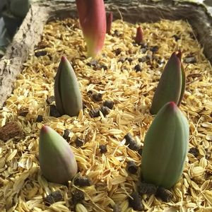 寒い((⛄️)) 雪がうっすら積もってる✨ 寒さで 💠はうまく咲かなかったけど フキノトウに新芽が❗️ 春とおからじ~🌱