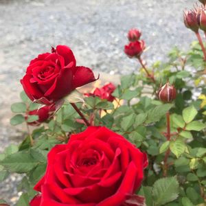 こんにちは😃 朝、晴れていたのに暗くなって雨☂️が降ってきたかと思えばまた陽が出たり☔️がふつたり、訳の分からない天気ですね♪ 近所の真っ赤なバラ🌹 🏷隣のはな おもわずパチリ📸
