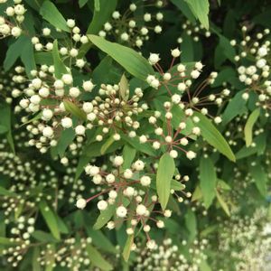 こんにちは😃 ☔️は未だだけど風が強いです😊 今日の花 コデマリ、小手毬 🏷隣のはな