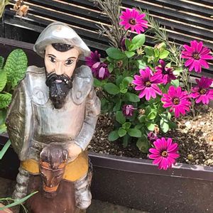 お隣さんの玄関先(*^o^*) オブジェに釣られて📸 ❤️オステオスペルマムなかぁ🤔 🏷隣のはな