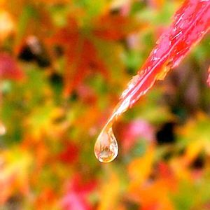 紅葉ドロップ 💧✧*。💧 我が家のモミジは葉先が傷み、色つきも疎ら 雨の日の方が潤って綺麗に見えます