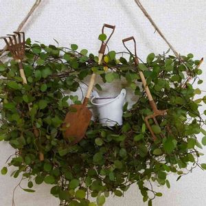 今日も☔ こんな日はオウチの中で楽しむ🎶 モッサモサに溢れるワイヤープランツで今度はリースを作ってみた☺ 可愛くできたかな(^o^)