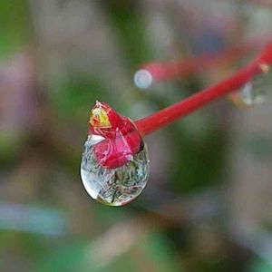 昨夜から雨です 新芽を包む雫はまだ冷たいよね💧🌱💧 昨日は春のように暖かすぎたから、今日の冷たい雨に植物も戸惑うかな