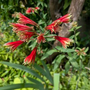 🏷️真っ赤な火曜日 いつもの公園 赤い花❣️❣️ ⬆️ツキヌキニンドウ ⬇️アルストロメリア プルケラ 今日は友達と久しぶりのランチ 🍳☕(ʘᴗʘ✿)
