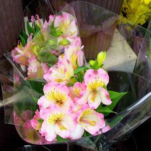 散歩道の公園にて 寄せ植えが素敵でした。 このチユーリップは初めて見ました。
