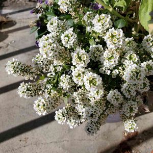 名前は知らなかったのですが、 保育園の花壇で見かけて かわいい(*´ω`*)と思ったので購入してみました♪ 『スイートアリッサム』というのですね☆ ちいさいお花がいっぱい!と子どもも喜んでお世話しています(^_^)
