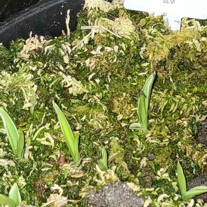 「斑入り鷺草」 4月16日pm6:34 ✧p📷qω•,,´)パシャ✧ 昨年から育てているサギソウ、10球根植えたのが、新芽が14本上がって来ました。 植えっぱなしで年越しをして来ています。 常に湿った状態にしておく為に、水苔でマルチングしてあります。 なので、少し新芽が確認しずらいと思います。