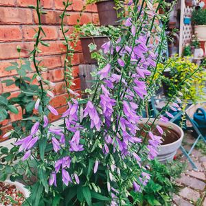 新入りのカンパニュラ達🪻 買ってきて植え替えしないと いけないの何個かあるけど 風強いなぁ🫠