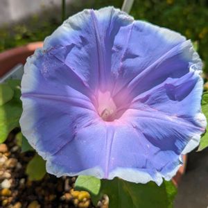 お疲れ様です 朝庭に出たら朝顔が咲いていました(. ❛ ᴗ ❛.) 朝顔の花ってこんな下で咲いたっけなぁ?