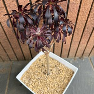 アエオニウム黒法師さん、お迎えしました🤗 早速ポットから植え替えましたが、ややぐらつきがあり、添え木をした方が良いみたいです🌳