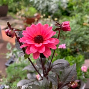 この子も89円園芸店の199円コーナーで見つけました❣️ 銅葉の小輪ダリアです シックで大人可愛い♡