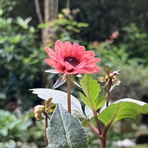 見切り品のお花🌸 貧相な状態で見切り品コーナーにいました。 この夏、同じ種類の色違いのプチダリアがモリモリ元気に咲いてくれているので、きっと復活すると信じお迎えしました。50円のお花です。 地植えしたら、やっぱり元気を取り戻し、お花が咲きました。蕾もついて、まだまだ楽しめそうです(*^^*) ❸❹は、先にお迎えし、次々と咲いているプチダリアです。(以前にも投稿しました)