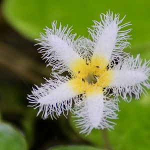 ヒメシロアサザ(姫白浅沙) ミツガシワ科アサザ属 小さな花が咲いていました 花冠は8mm程で 縁に短い毛があり面の部分には無く あっても筋状に生える程度 葉は2〜6cm 卵形 全縁 基部がハート形 閉じぎみ 午前中の早い時間に開花 午後閉じてしまう 水中に閉鎖花を付ける 分布: 本州〜沖縄 朝鮮、中国、ベトナム 花期: 7〜9月