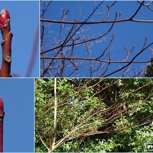 イヌザクラ 芽吹き 冬芽の「三大美芽」である コクサギ、ネジキ、ザイフリボクに並ぶ美しさだと イヌザクラの冬芽も加えて「四大美芽」にと かしさん、なるさんが提唱されています 芽吹いた葉と芽鱗の色も美しくて、驚きました 妖艶な赤からピンクがかった 輝く芽鱗になっていました 冬芽は 1/21 をご覧ください