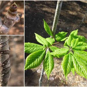 【われら樹木探検隊】! コシアブラ(漉油) ウコギ科 落葉高木 見たことある葉痕だと思ったら フォロワーさんの投稿で見た コシアブラです 移植されて、山の木のエリアに来ています こちらで採取することは出来ませんが 芹やミントの様な清涼感があり 山菜の女王と言われているそうです