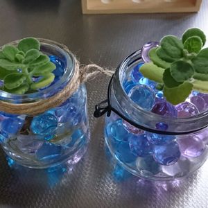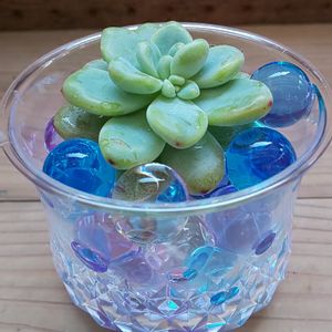 休日の多肉作業(おまけ) おまけとは書いてありますが、実はこちらの方が自分的にメインだったりします💦 以前からプラントビーズを使って多肉を育ててみたいと思い、ちょうどいい入れ物が手に入ったので大振りなセダムを買ってきて入れてみました 根を短くカットしてしっかり洗ってから置いてみたけど腐らないといいな💦