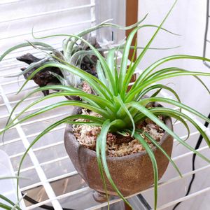 チランジア・カピタータ 以前、趣味の園芸で 熱帯植物園芸家の杉山拓巳さんが 「チランジアは、鉢植えにしたほうが良い」と アドバイスしていたので 鉢植えにしたら...。 カピカピだったチランジアが ホントに元気になって株が増え どんどん新芽が出ています。 とてもユニークな杉山さんのYouTube 時々 観て参考にしています。