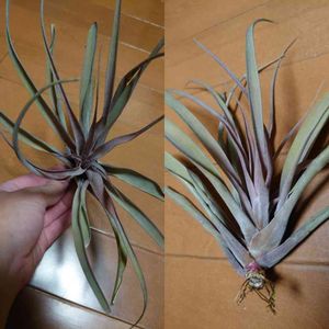 この2つ、どちらも「カピタータ」ってタグが付いてたんだけど、何か同じものではない気がします。。どなたか分かる方アドバイスください🙇♀️ どっちがどっちでも2つとも可愛いし、違うものでも構わないけど、気になりました。 チランジアって交配も出来るから判別は難しいみたいですね。 もともと、手で持ってる手前の方は小さかったのと、奥のは水が好きみたいでぐんぐん葉を広げて根っこまで出てきました。