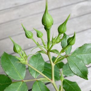 初めて薔薇を育てています。京成バラ園2021年の新作フォルツァ!(フォルツァの後にビックリマークがつきます。) 去年買った苗についた蕾は全部摘み、今シーズンを迎えました。いよいよ咲きそうです。一株に101の蕾がつきました。全部咲かせちゃっていいのかな…?