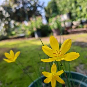 💛ゼフィランサス♪💛 この暑さの中 ヒョロヒョロの茎にちょっと小さめのお花がようやく一輪咲きました✨✨✨🥹💞 アルジュナミックスの球根を植えて2年目。 昨年はカラフルに咲き揃う事もあり 楽しませてくれました🥰 今年も色々咲きます様に🤗💛🧡🩷🎶 🏷️日曜ビタミンカラー♪ 🏷️幸せの黄色いお花 に参加させてください🎶