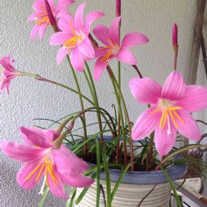 今日は、このピンクの花🌸が 咲きましたよ🌸 ゼフィランサス とか、サフランモドキ とか 言うようです。 今日みたいな 暑すぎることなく、 曇りがちだけど、陽も 差すぐらいの 天気が あってるみたい..... なんだか、この子、可愛い💕〜 😊 これは、鉢植え デ〜ス(╹◡╹)
