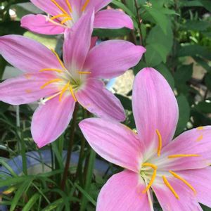 レインリリーのゼフィランセス ピンクパンサーが週末に合わせて咲いてくれました♪ 台風の雨が開花のきっかけになったのかなぁ。